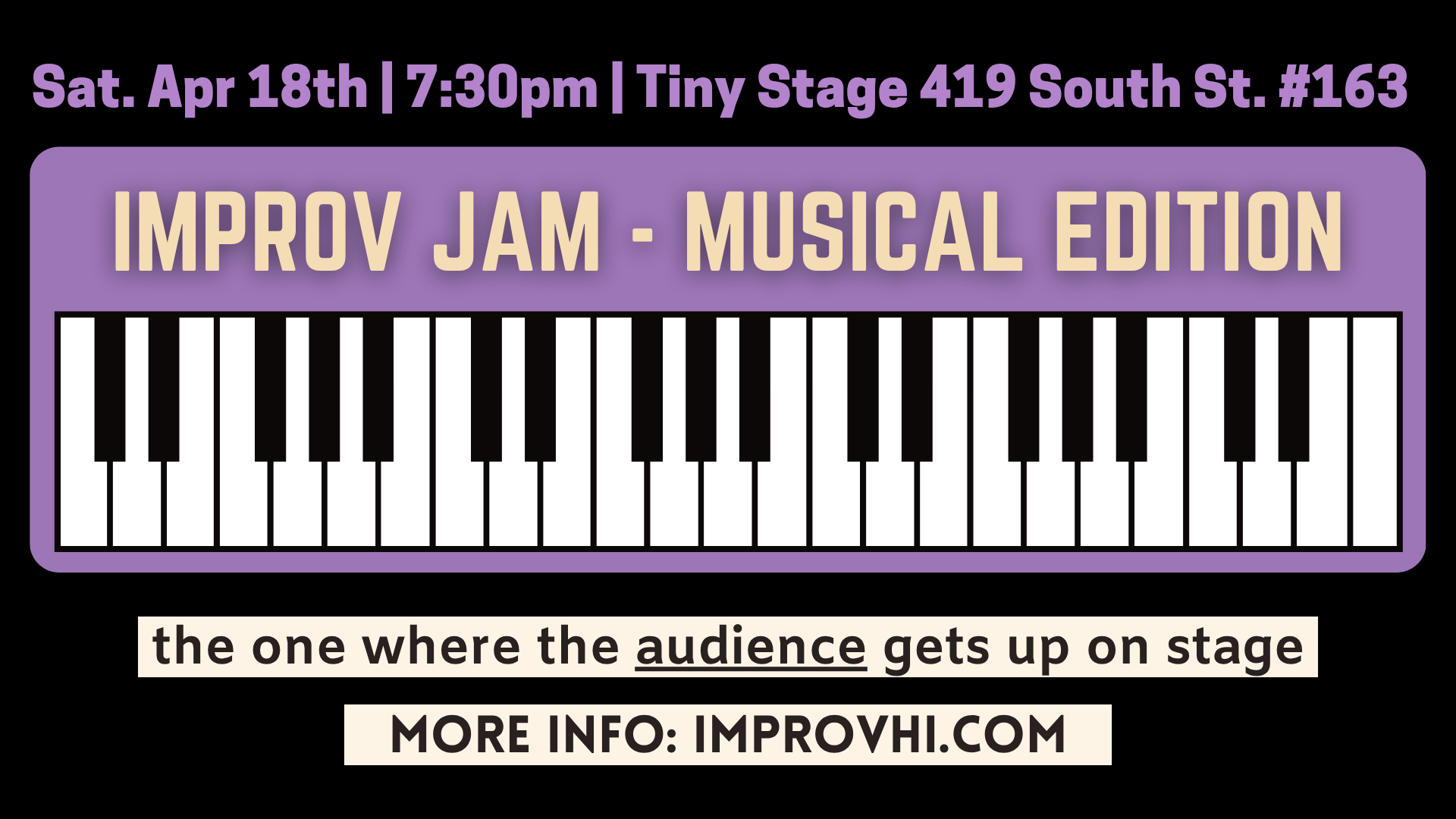 Hop into The ImprovHI Scene Machine*—our fast-paced, one-night drop-in built to get you in, up, and playing. This improv workout is all about doing the reps: long-form scenes, with real-time feedback...